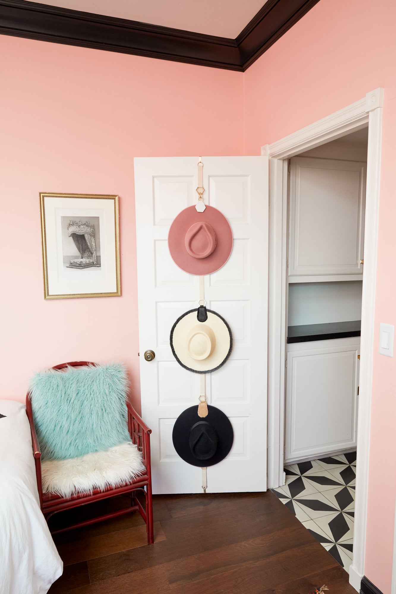 Neutral enough to look sophisticated in any room and functional enough to perfectly display 3-6 hats up and out of the way.