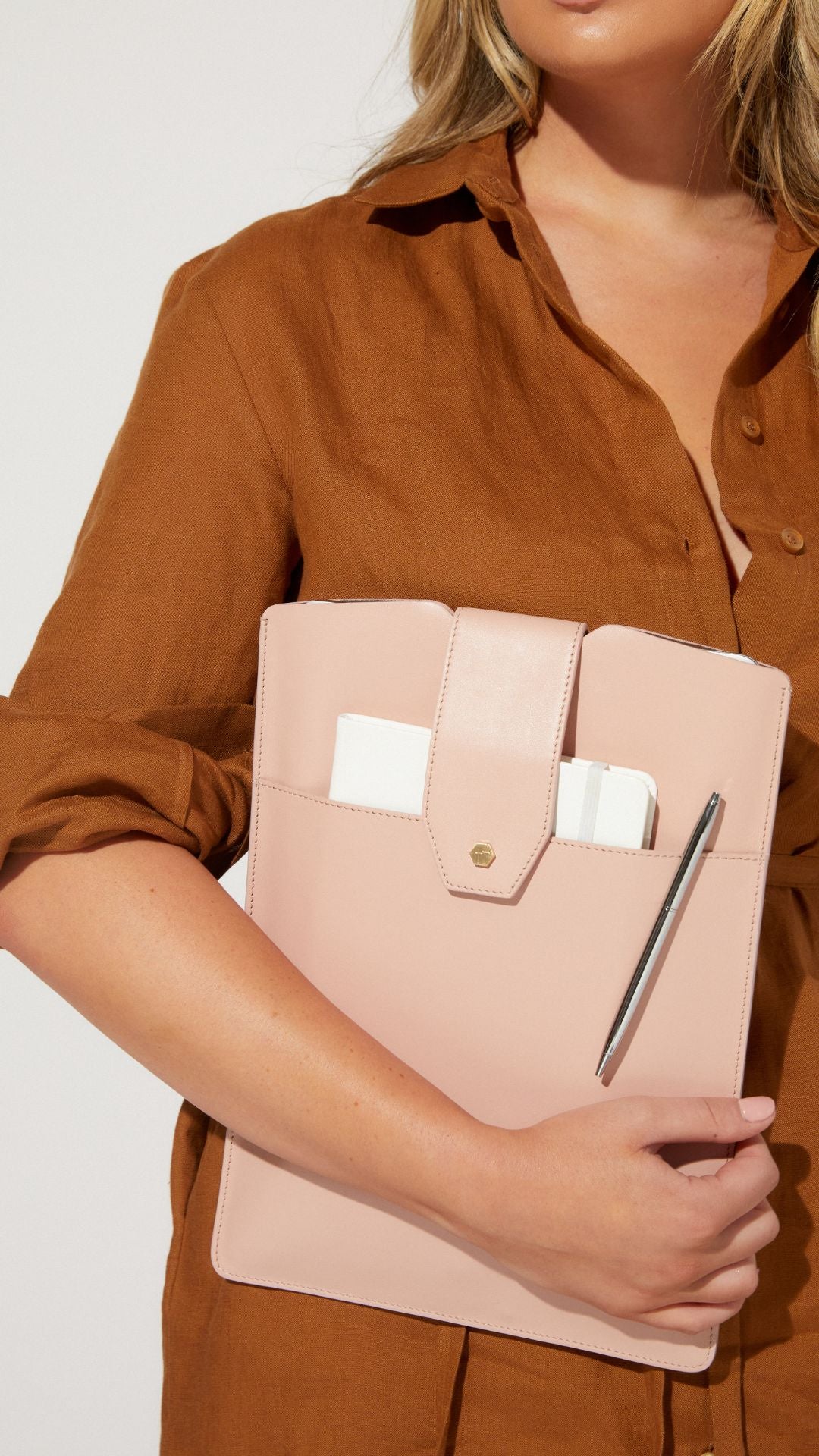 We took a basic laptop sleeve and laptop case, and reimagined it to look more like a clutch to protect your laptop when you take it from place to place. We designed our laptop clutch in durable faux leather made from cactus so you have a sleek, slim-fit sleeve to protect your laptop on-the-go along with a discreet front pocket to hold your essentials (iPhone, journal, pen, etc)- all in one. Stash it in your bag or clutch it from place to place!