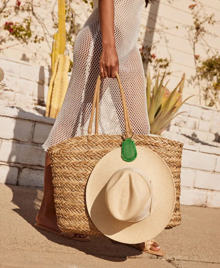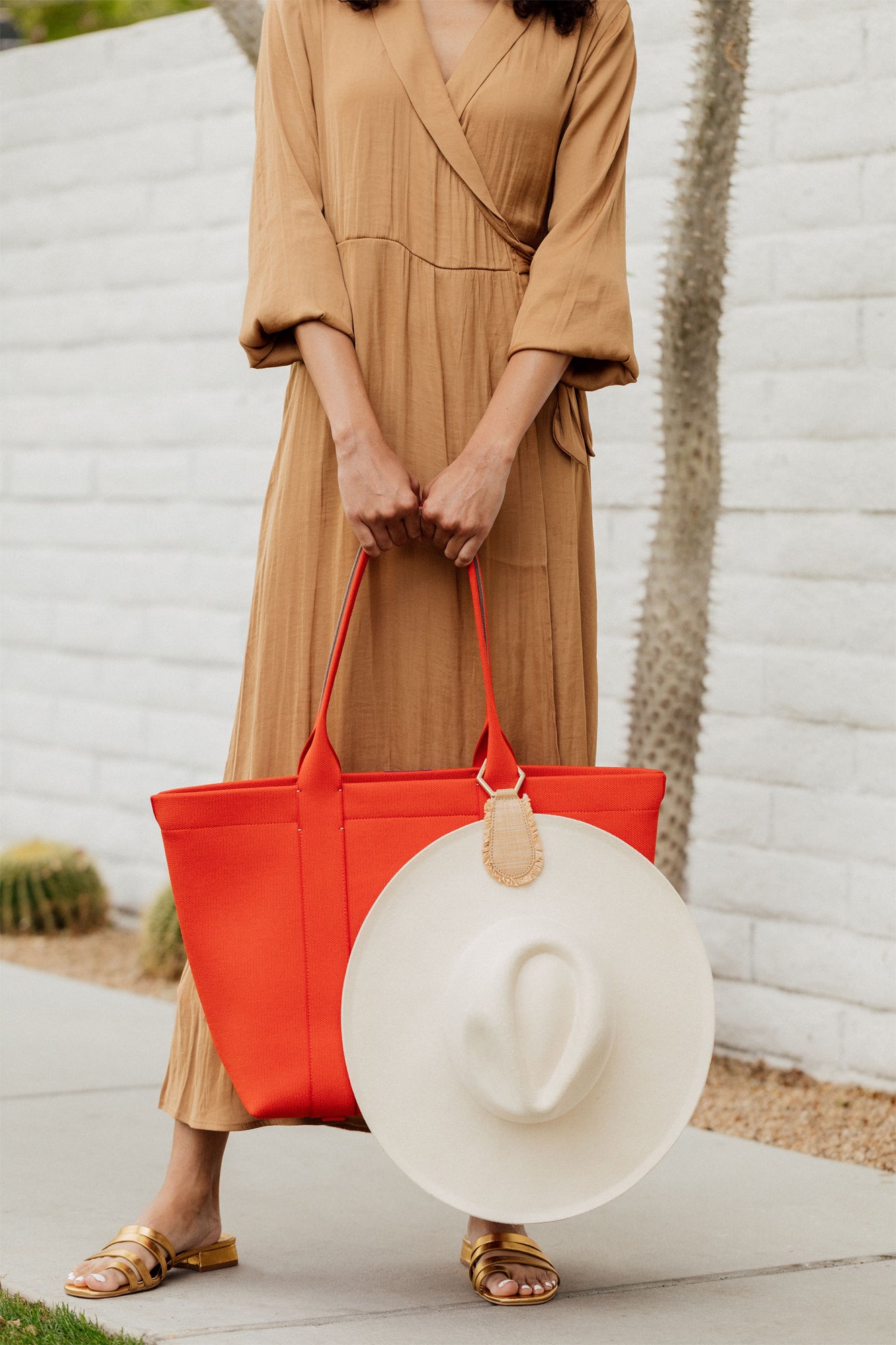 The Fray TOPTOTE hat clip is a year round favorite with our customers. Truly one of our best sellers! So much so we keep designing it in new colors. You can see it seamlessly pairs beautifully with your vacation tote or your everyday bag. Chances are if you're reading this you know traveling with your hat on vacation can be such a hassle. Many people just end up leaving their hat at home because they would rather not deal with it- sound familiar? That's why we invented a solution to make traveling with your hat a seamless and stylish situation. We also believe that because of the TOPTOTE hat clip, you will wear your hats even more!